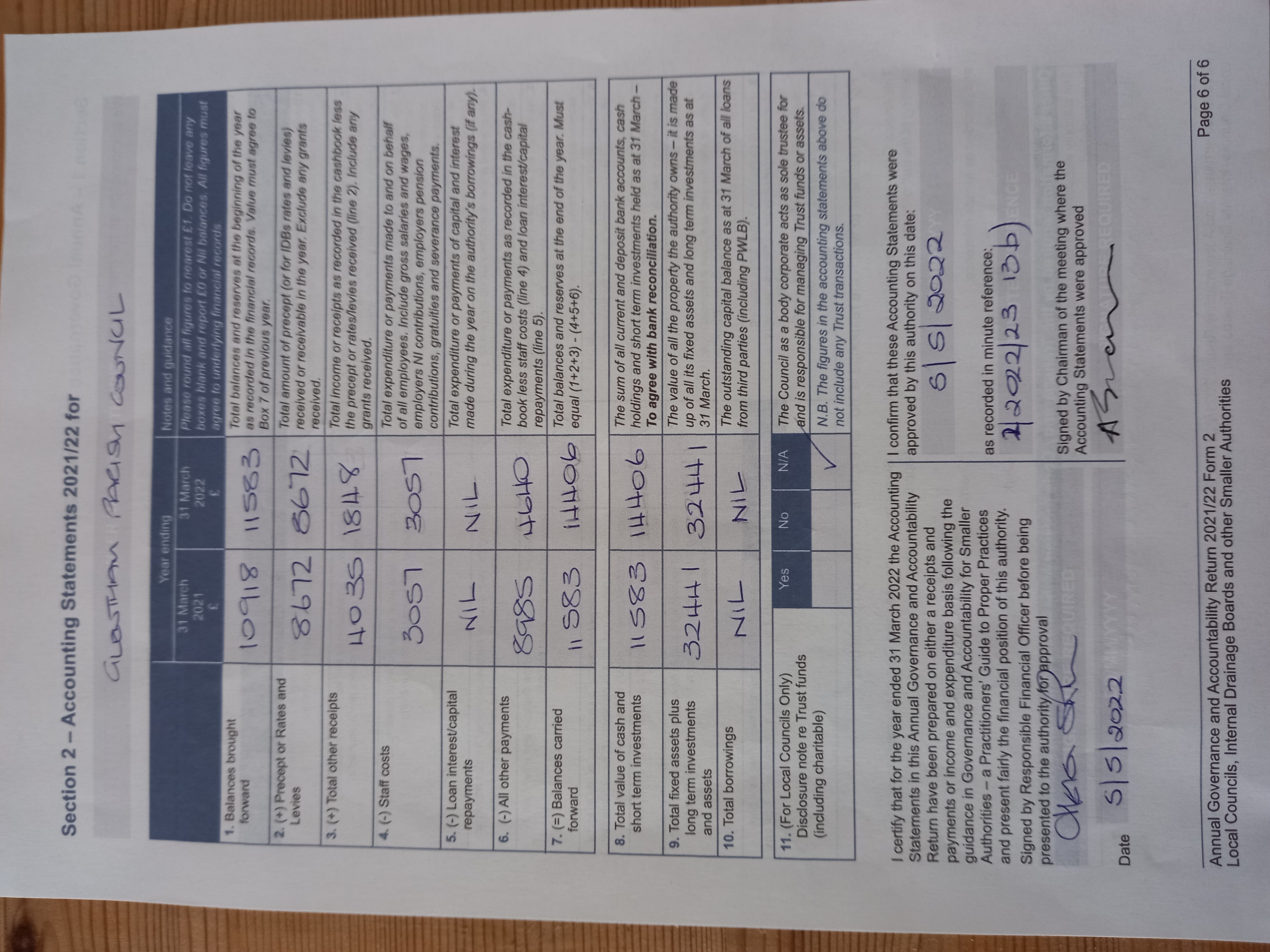 Audit documents for the 2022 audit